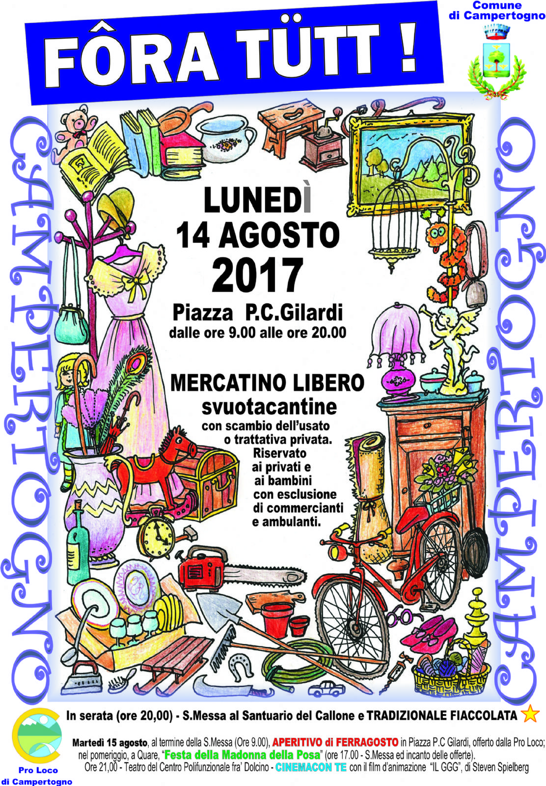Martedì 15 agosto, al termine della S.Messa (Ore 9.00), APERITIVO di FERRAGOSTO in Piazza P.C Gilardi, offerto dalla Pro Loco;