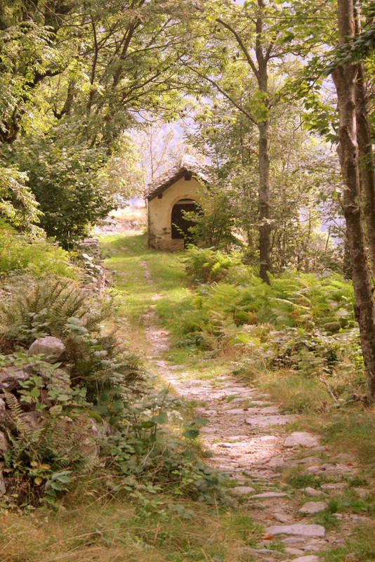 La mulattiera che si inizia a percorrere è ripida, ma comoda, e la dobbiamo alla generosità del campertognese Giuseppe Della Bianca, che per ringraziare la Madonna per la fortuna avuta nel suo lavoro di imprenditore nella cartiera di Bettole di Borgosesia, nel 1820 lasciò £. 2000 per ampliare e ricostruire il sentiero.