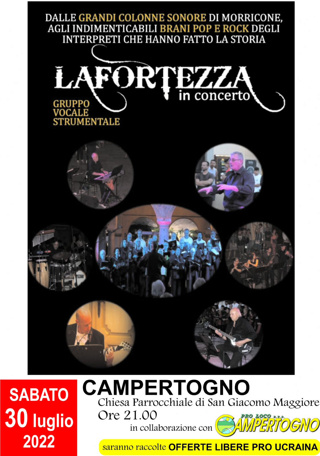 Grande concerto ad offerta libera PRO UCRAINA con il gruppo vocale e strumentale "LA FORTEZZA" di Meina, in collaborazione con PRO LOCO di Campertogno.