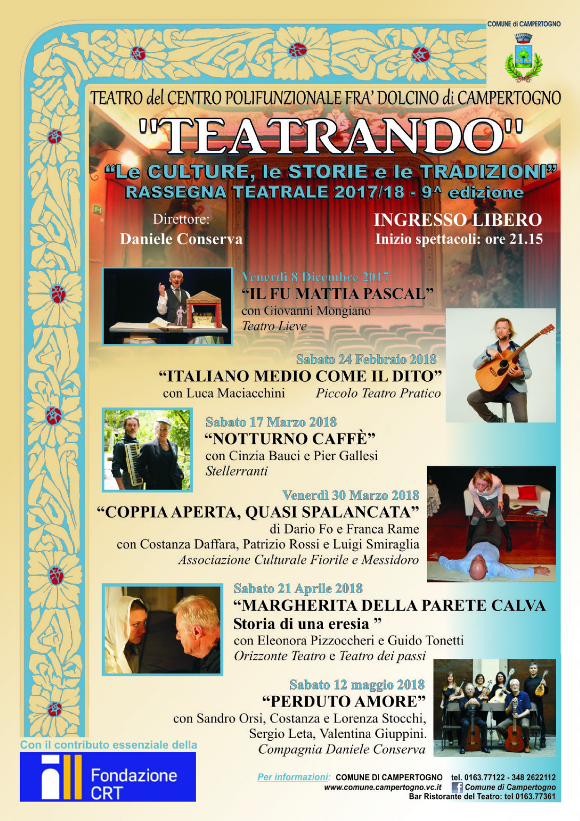 Gli spettacoli si svolgeranno presso il CPf Fra' Dolcino, alle ore 21,15.